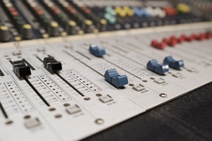 Ein voll ausgestattetes Tonstudio mit moderner Recording- und Schnitttechnik für hochwertige Audioqualität.